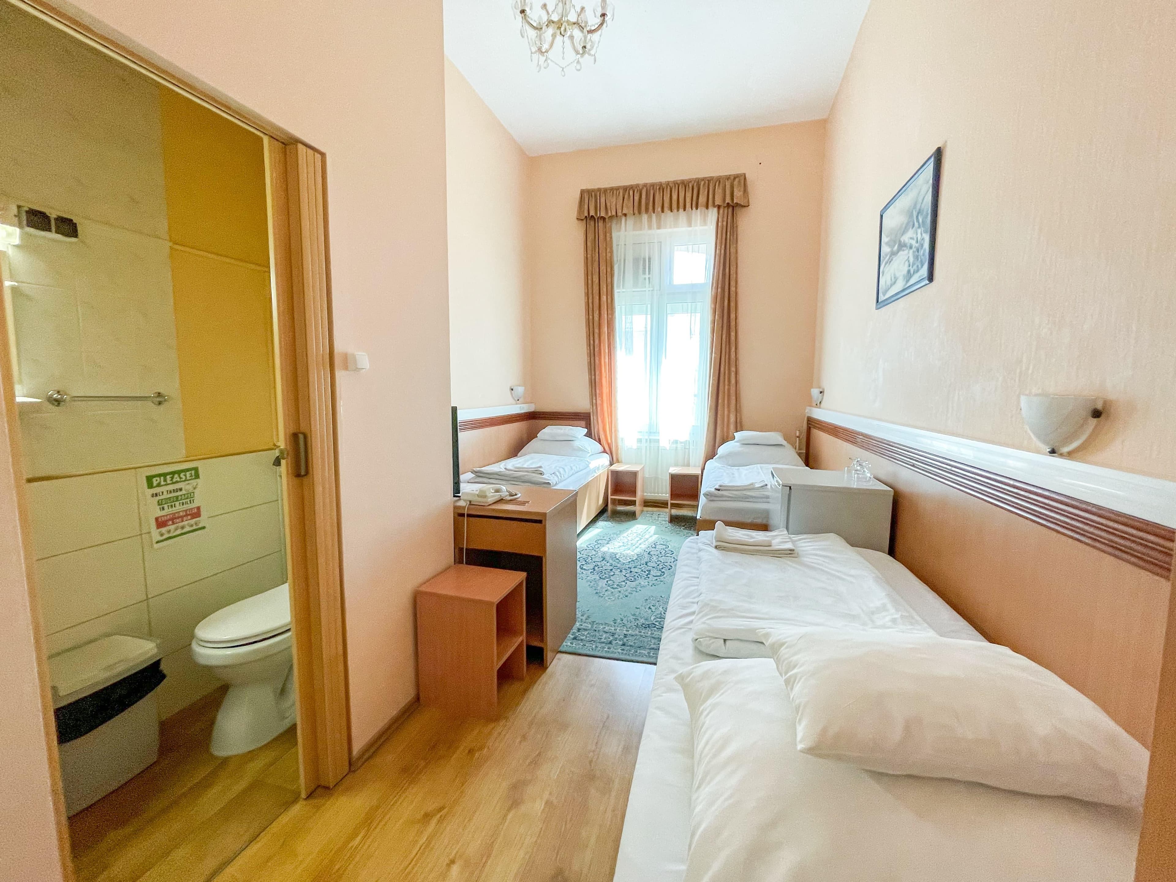 7 db háromágyas Basic szobáinkban kényelmes elhelyezést biztosítunk alacsonyabb árfekvésű szállást vendégeink számára.